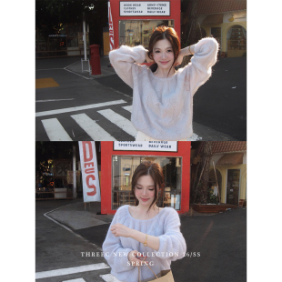 三喜threec 娇憨50%羊毛23%马海毛高品质宽松麻花针织毛衣 念念
