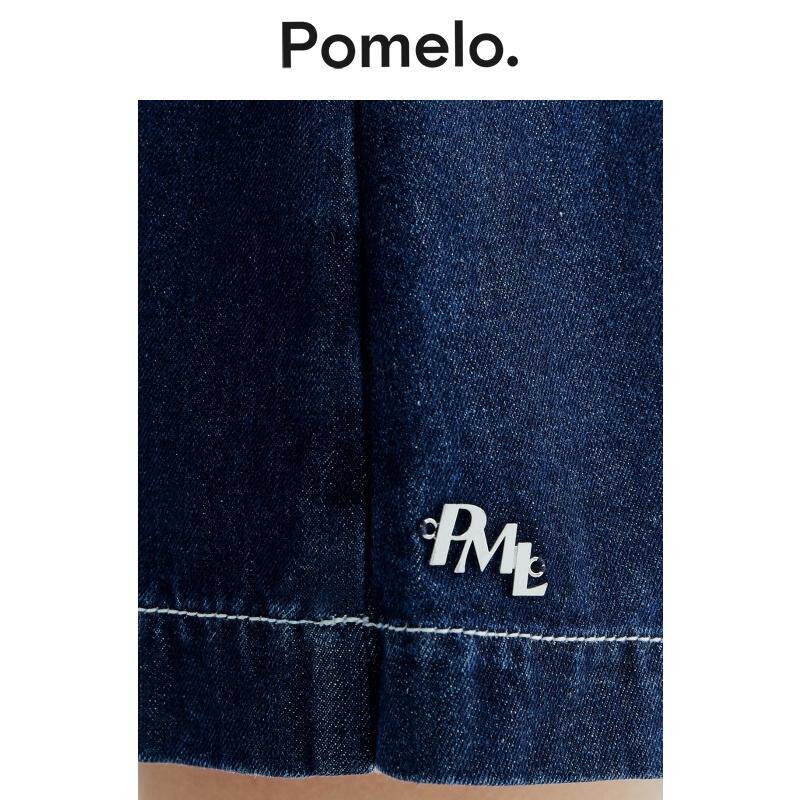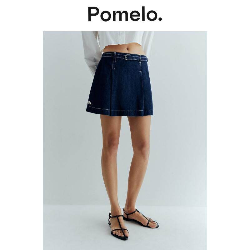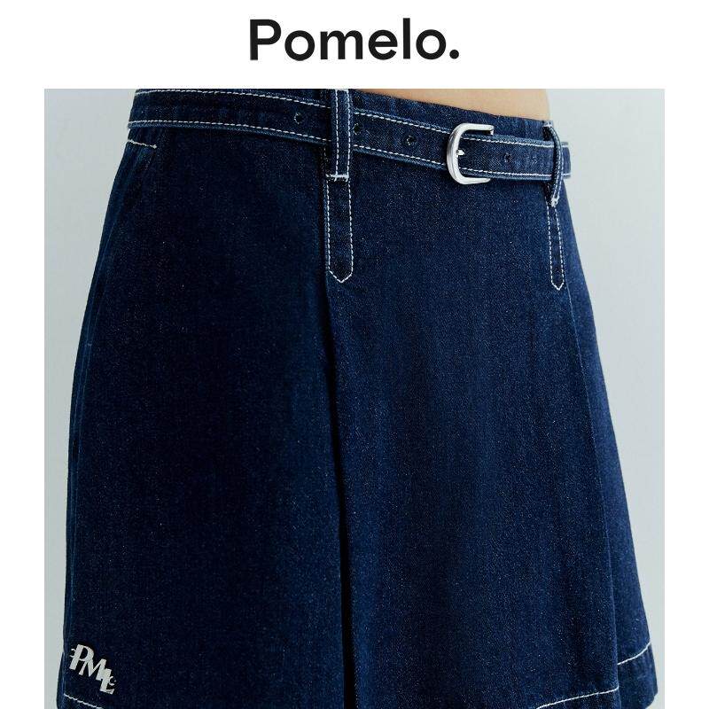 腰带设计明线高腰显瘦假两件a字短裙裤 Pomelo 通勤风牛仔裙裤