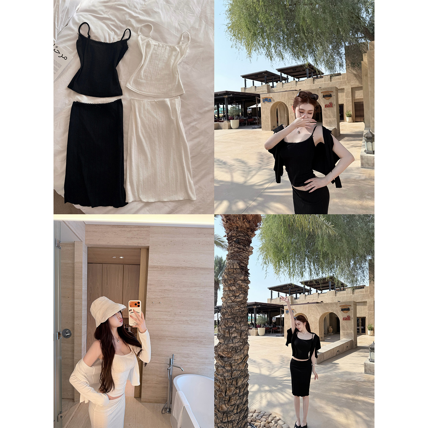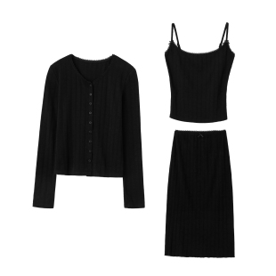 半裙三件套装 棉感透气吊带女春夏开衫 白女cotton系列 韩雨嘉