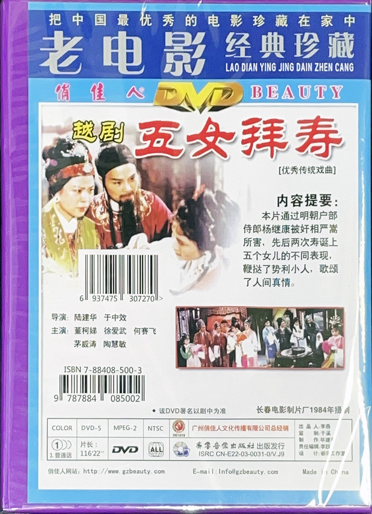 五女拜寿 越剧电影 1DVD 董柯娣 茅威涛 正版 何赛飞 戏曲碟片光盘