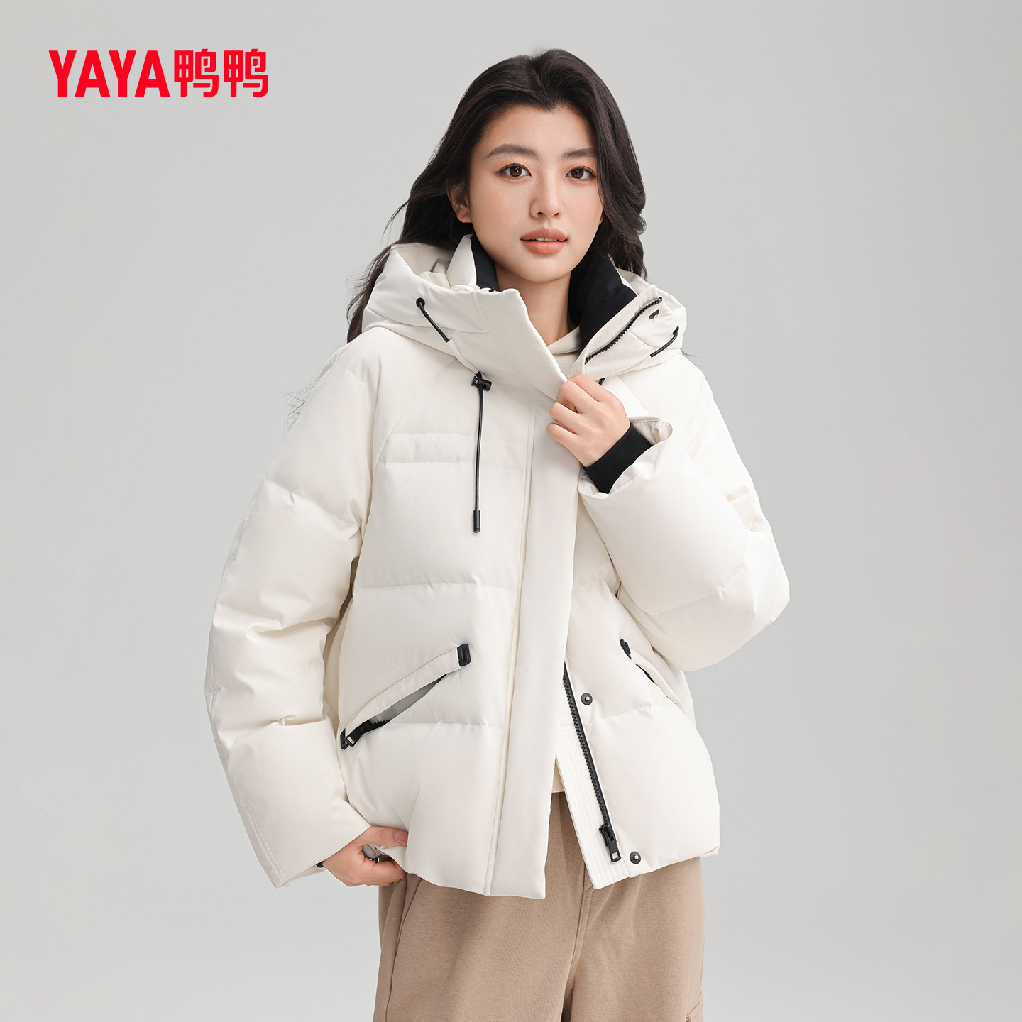 时尚 官方正品 简约休闲百搭连帽保暖外套 2025新款 鸭鸭羽绒服女短款