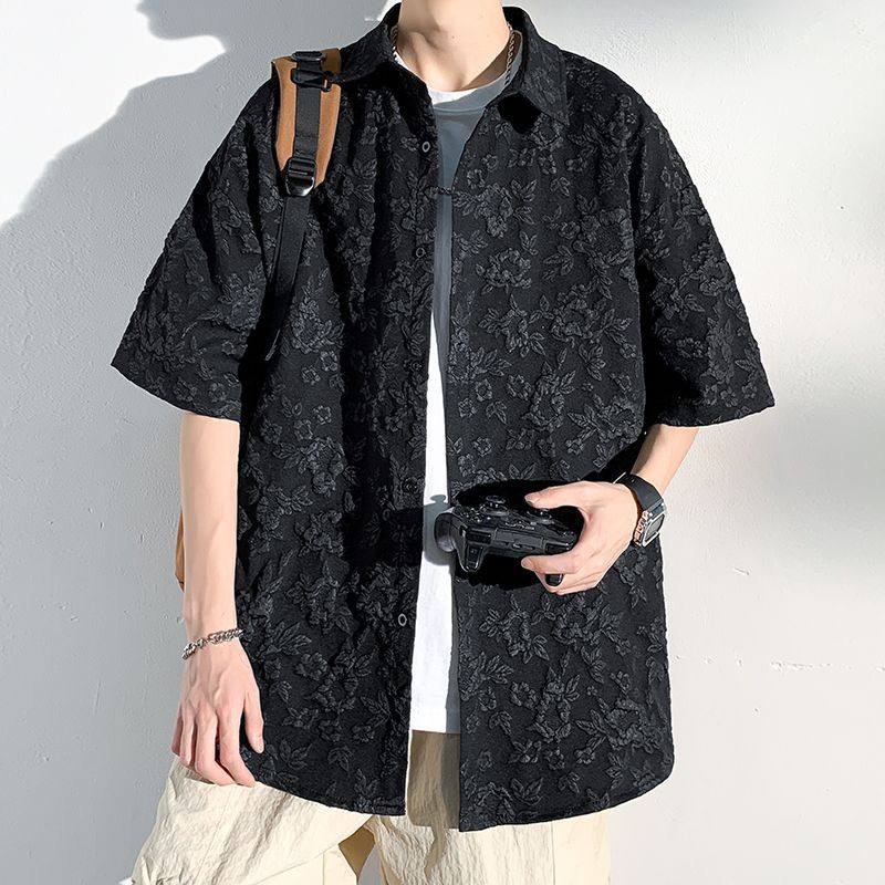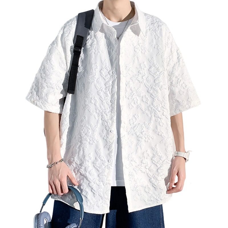 男2025夏季 韩版 感休闲短袖 上衣男短袖 潮流百搭衬衣男 大码 衬衫