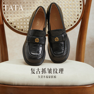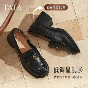 皮鞋 TATA他她粗跟英伦乐福鞋 2025秋新款 浅口高跟单鞋 7A524AA5 女鞋