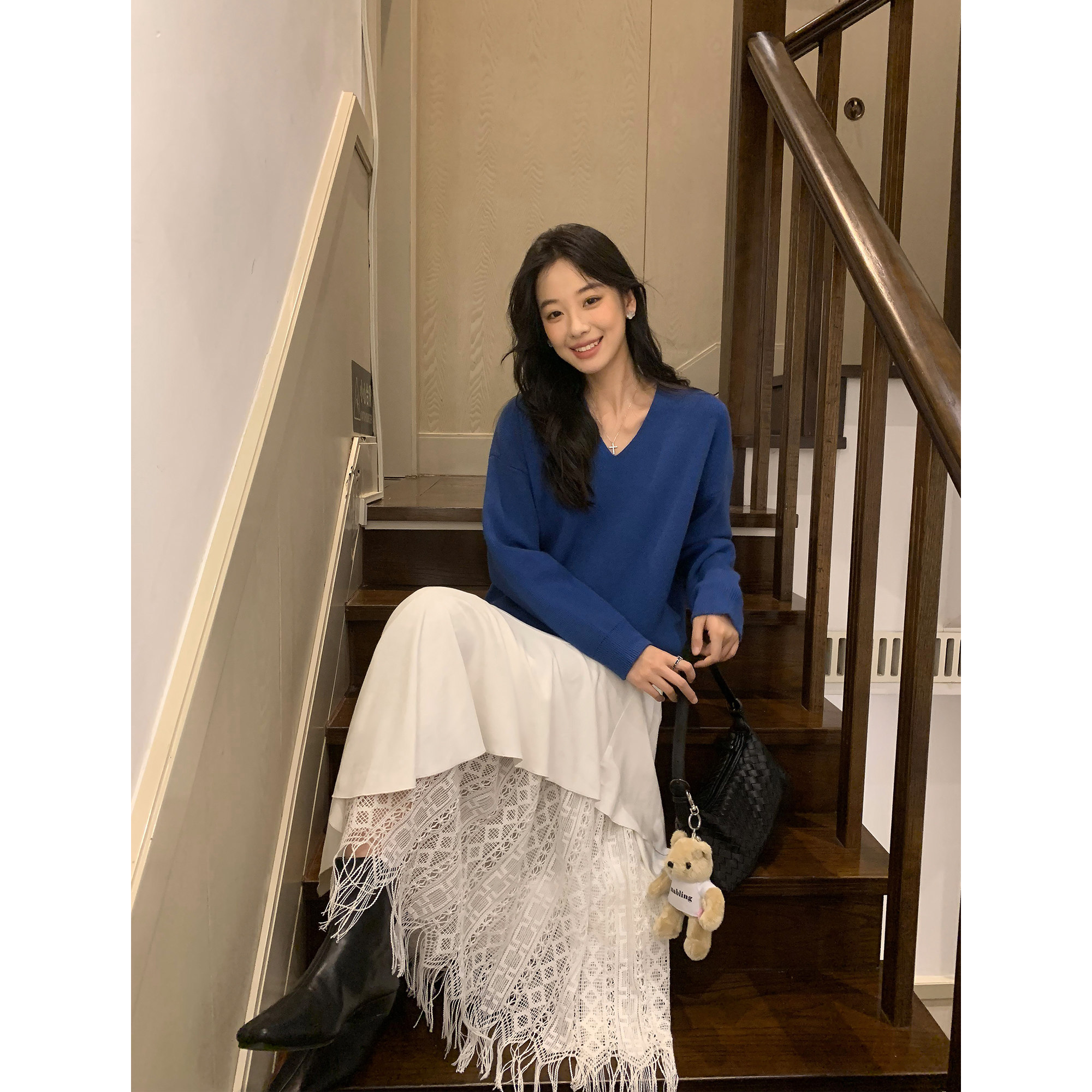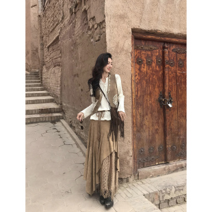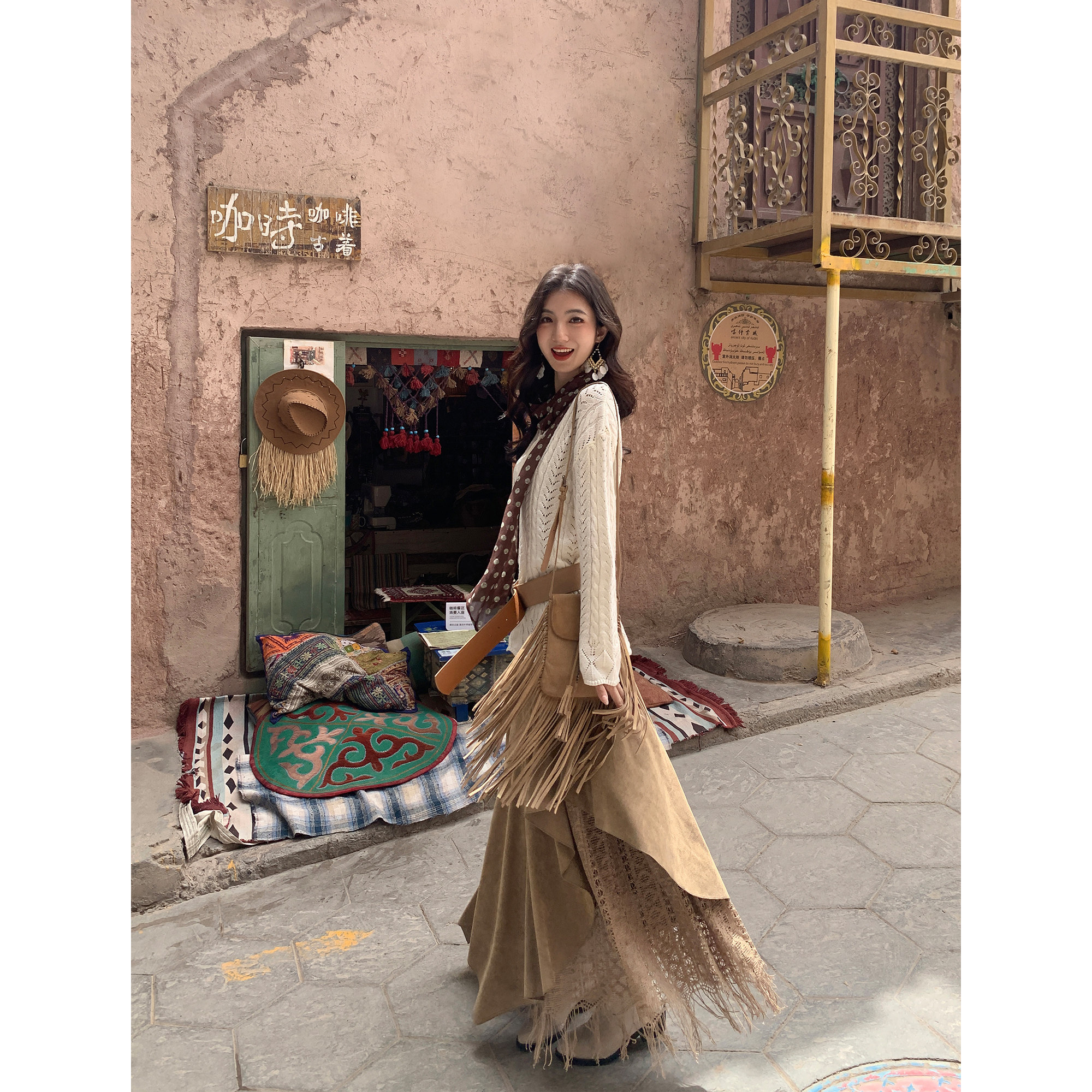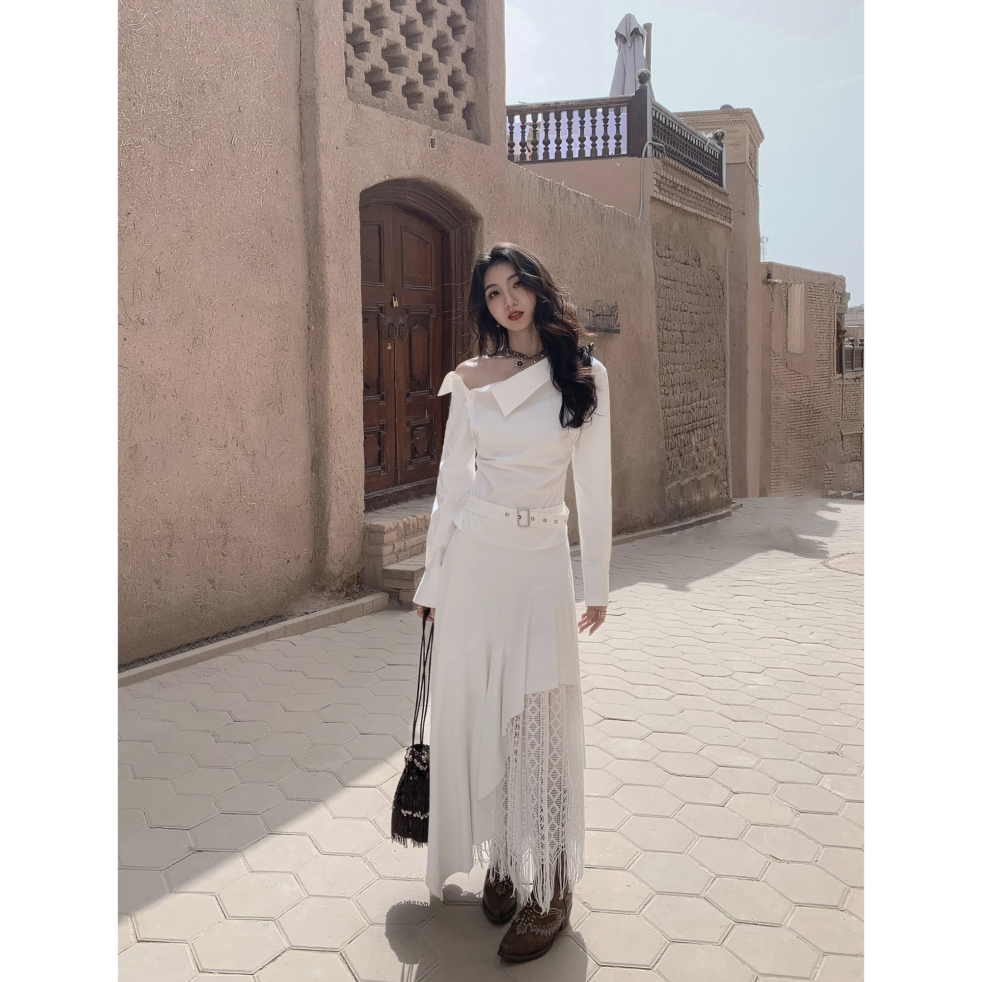 MULVAN 重工拼接不规则半身裙女松弛度假风高腰度蕾丝裙 出片实派