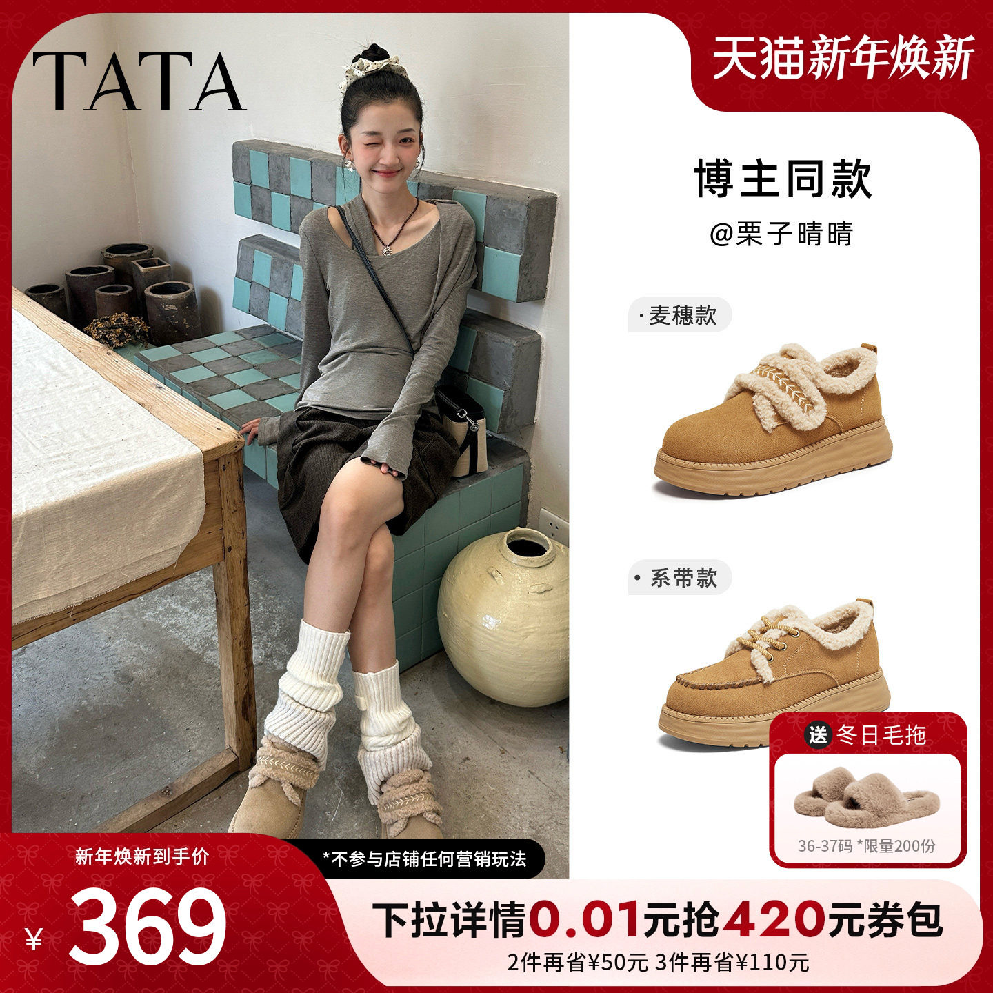 厚底加绒保暖防滑棉鞋 毛毛单鞋 女CYY07DM5 冬季 TATA他她小熊勃肯鞋