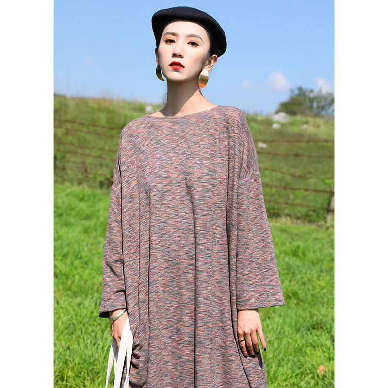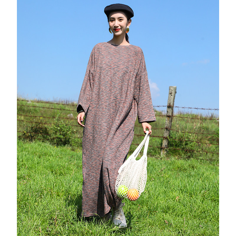 原创秋冬欧美街拍针织打底袍子连衣裙文艺显瘦过膝大码 超宽松长裙