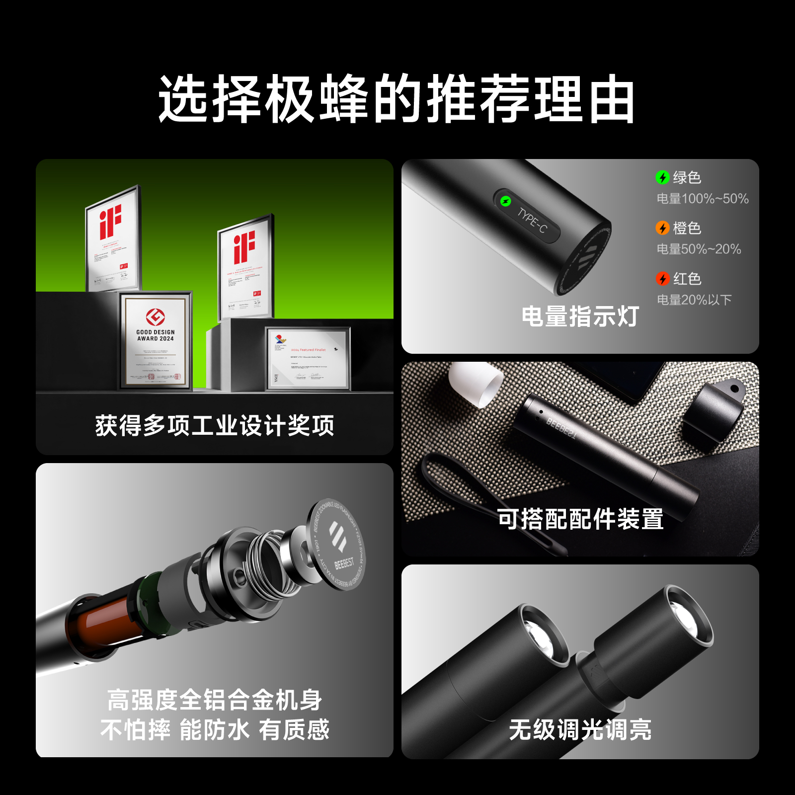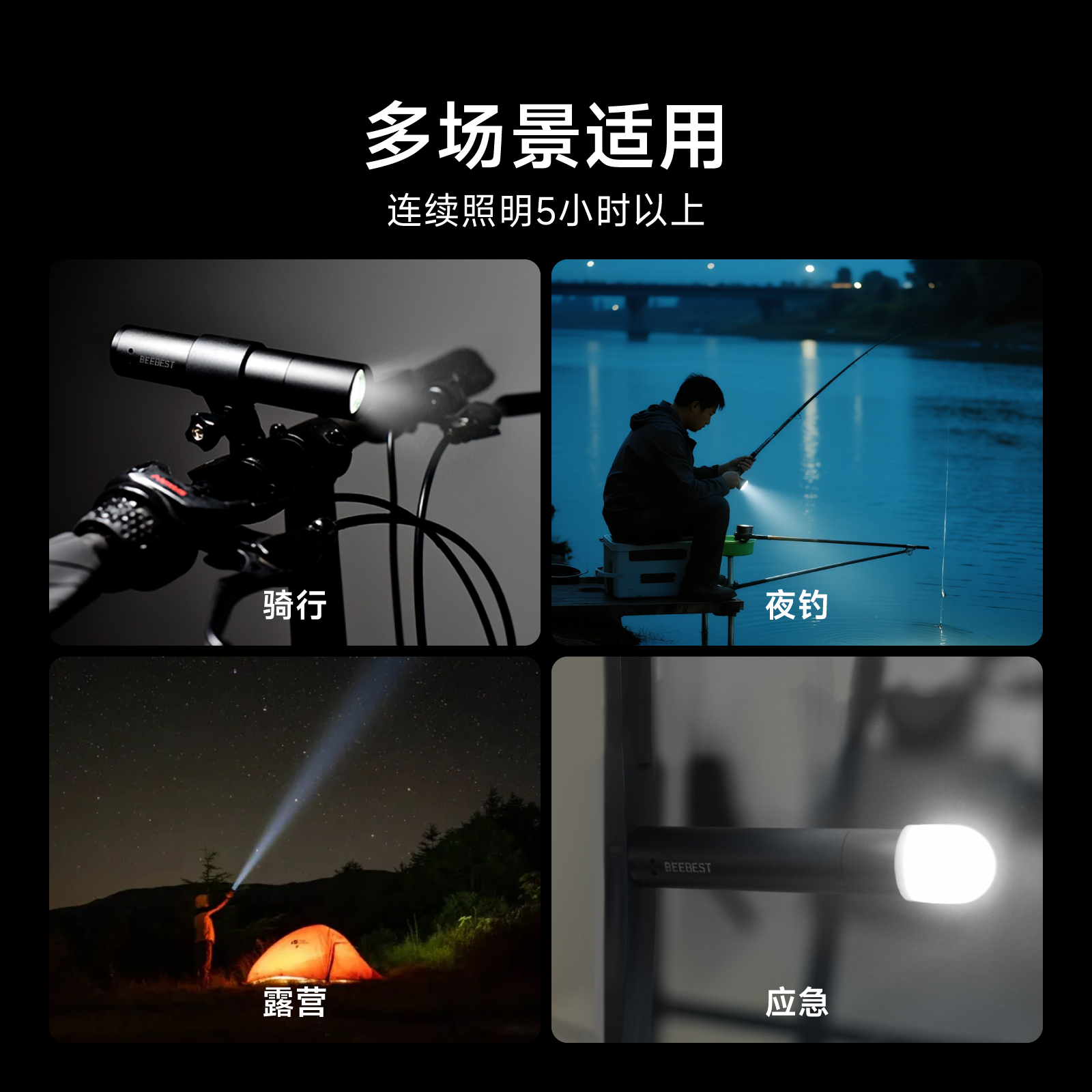 多功能高亮强光手电筒充电便携小型露营户外灯学生宿舍护眼看书