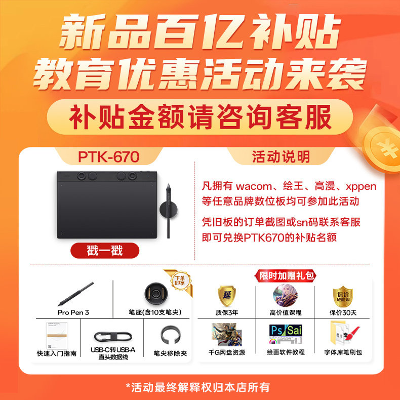 Wacom影拓新品 PTH460数位板IntuosPro470电脑PS绘图板电子绘画板