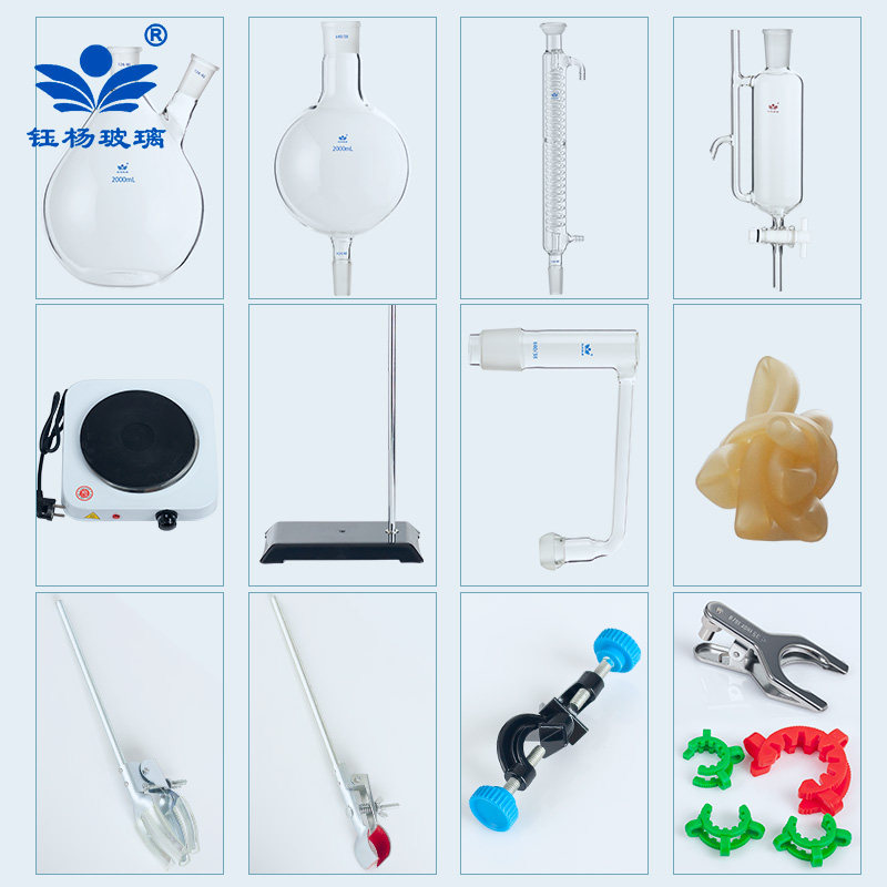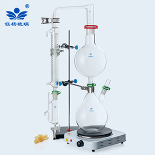 格雷厄姆冷凝器 2000ml二颈烧瓶 精油提取分离器装 置蒸汽蒸馏设备