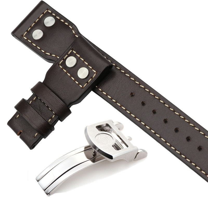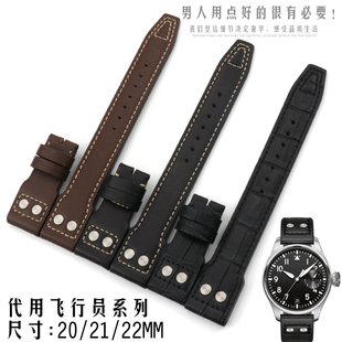 真牛皮手表带代用万国大飞行员小王子马克葡计zf带钉男20 22mm