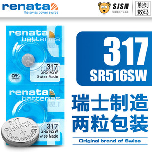 Renata瑞士317手表电池SR516SW适用斯沃琪Skin女天王飞亚达天珺浪琴石英专用纽扣电子超薄Battery