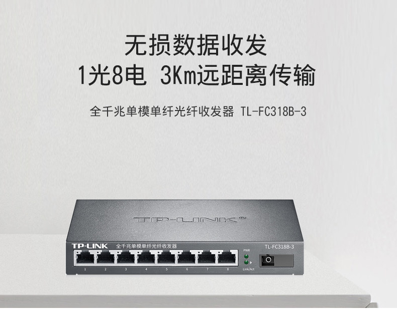 FC311A 3&TL FC318B 千兆1光8电单模单纤光纤收发器SC口3公里8口光纤交换机模块传输器 普联TP 3套装 LINK