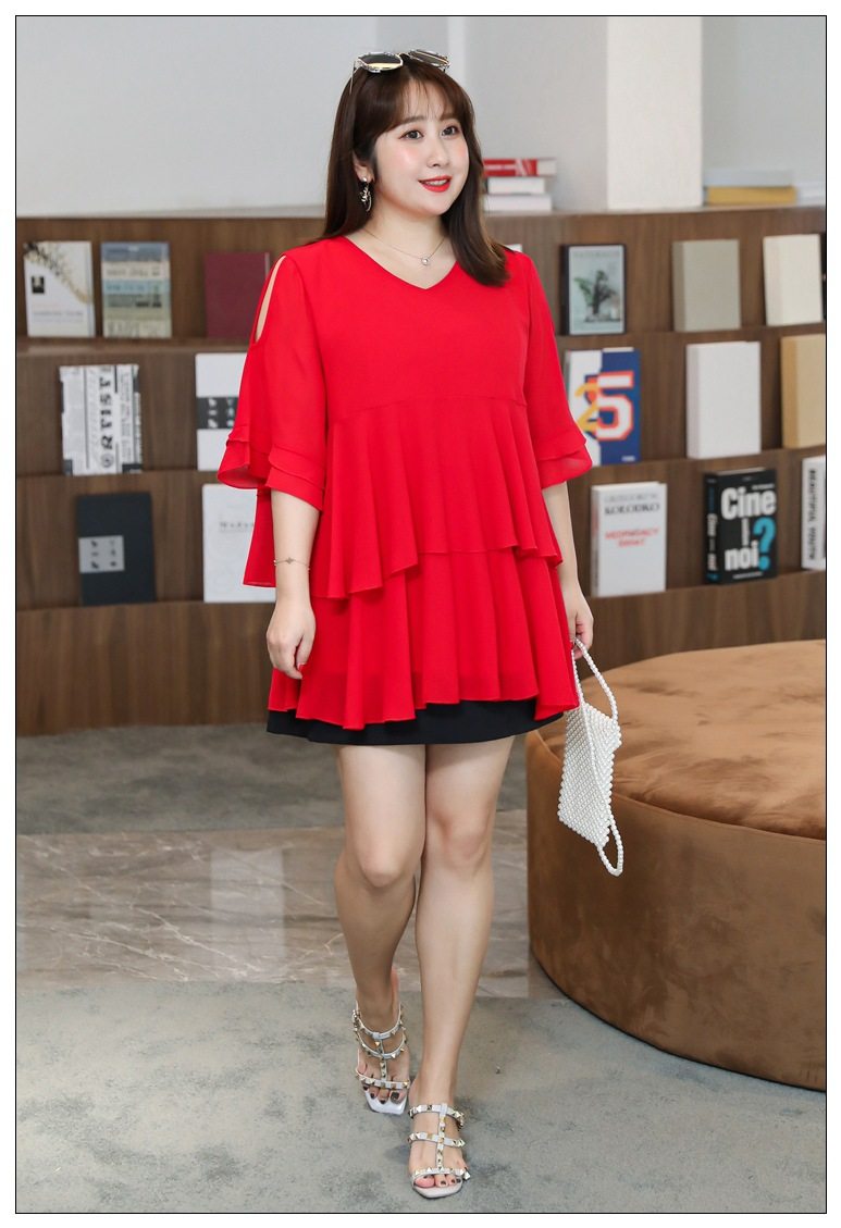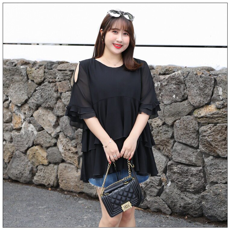 上衣 200胖妹妹遮肚显瘦T恤300气质雪纺衫 240斤特加肥加大码 女夏装
