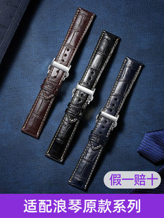 浪琴表带真皮原装 美洲鳄鱼皮适用于八针月相军旗名匠手表带男女士