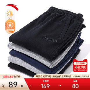 新款 冬季 加绒跑步裤 直筒裤 子 安踏防泼水运动长裤 黑色休闲长裤 男士