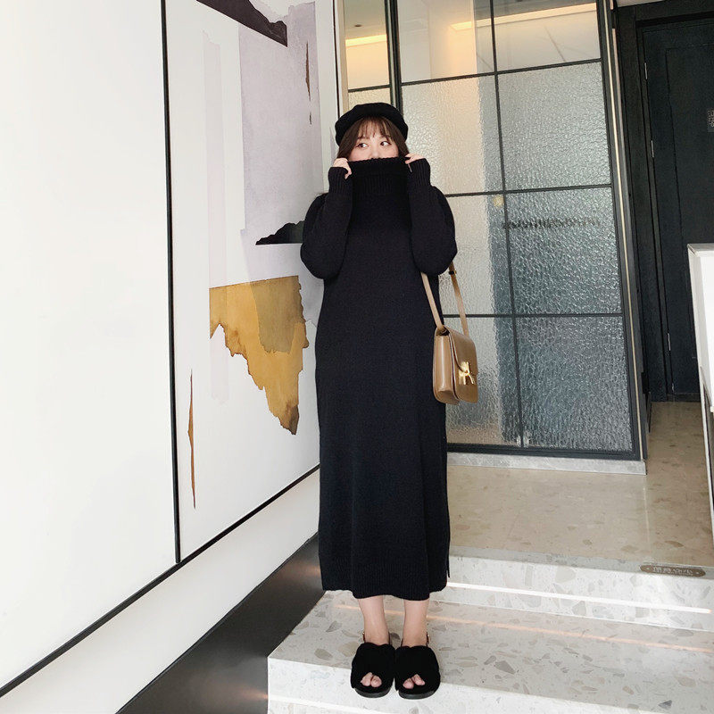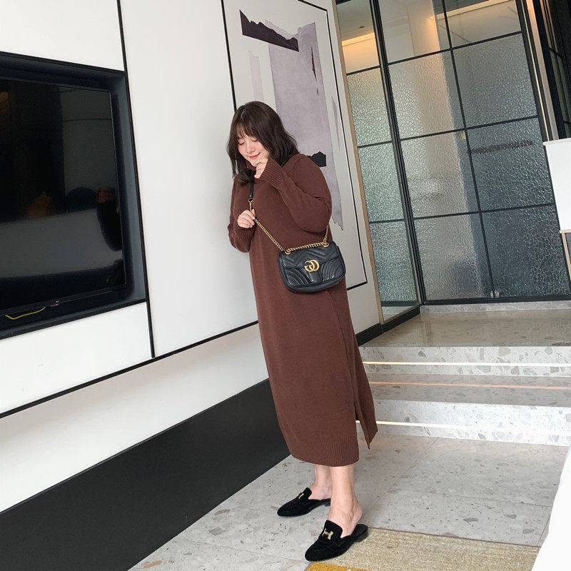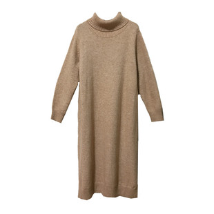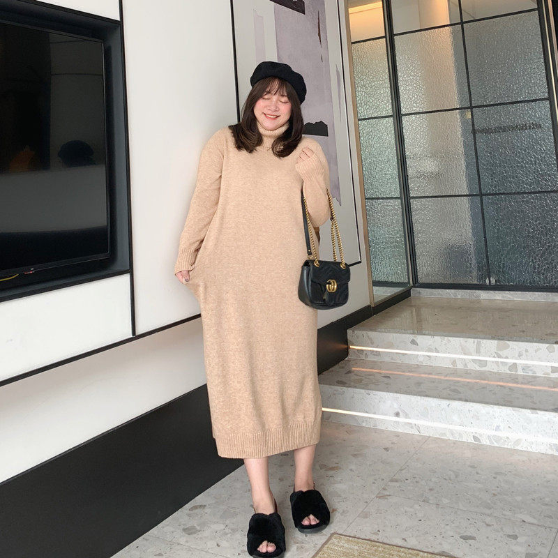 针织高领毛衣裙过膝遮臀胖MM连衣裙女 温柔慵懒长款 加大码 宽松韩版