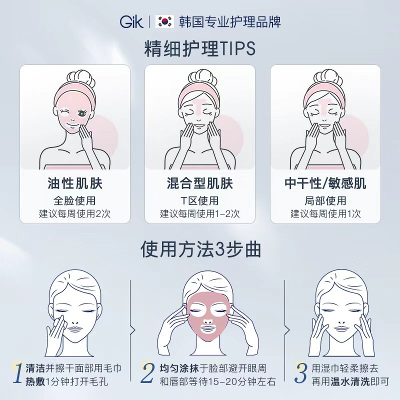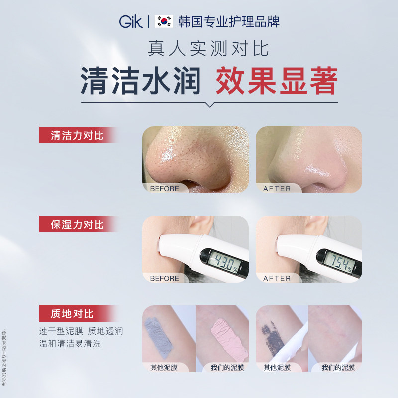 Gik高岭土清洁泥膜深层清洁毛孔去黑头涂抹面膜韩国进口控油泥膜