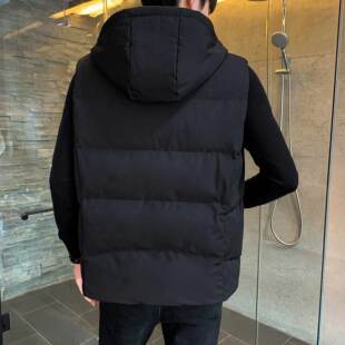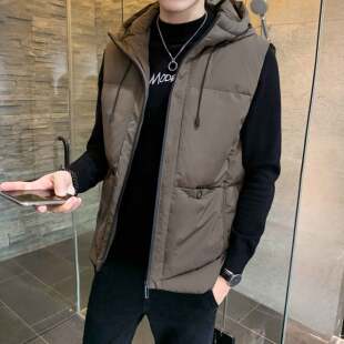 韩版 大码 潮流帅气保暖羽绒棉背心加绒加厚外套 马甲连帽秋冬季 男士