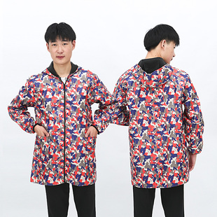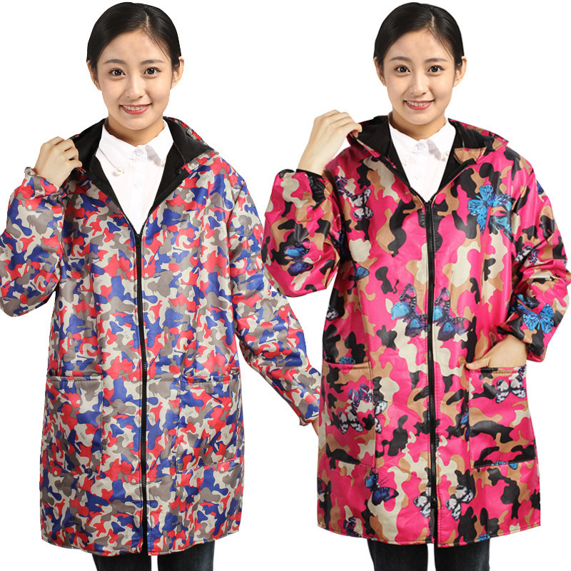 大褂加绒工作服长袖 罩衣连帽防尘服劳保防护服围裙工厂上班罩衣