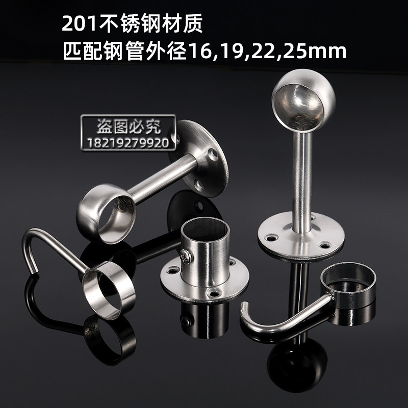 不锈钢圆头座毛巾座厨房挂杆座法兰座窗帘浴帘杆衣通杆和尚头