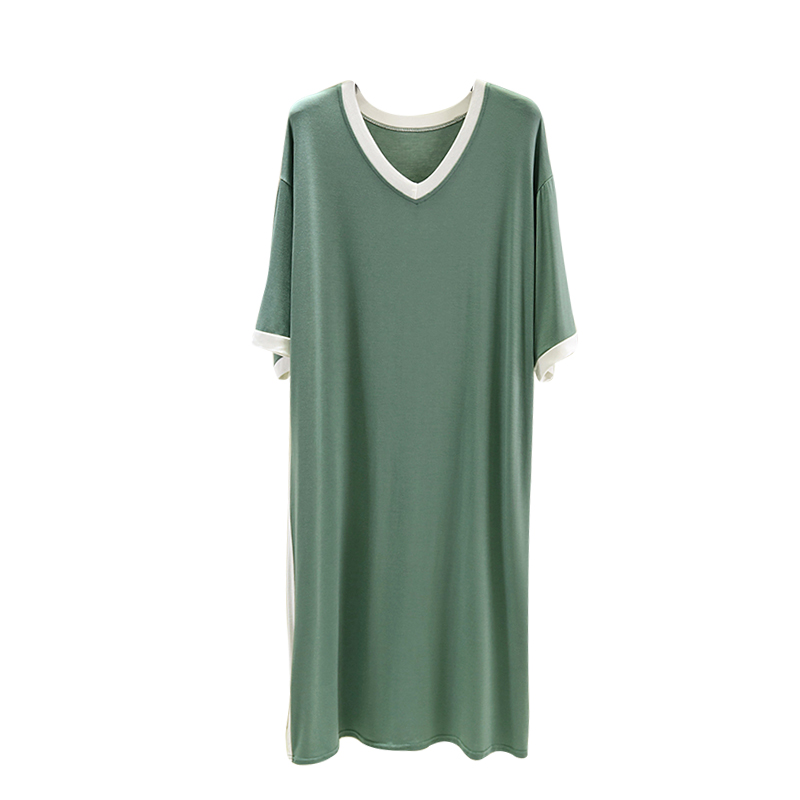 V领撞色打底长裙 睡裙洋气薄款 莫代尔短袖 连衣裙女夏宽松显瘦大码