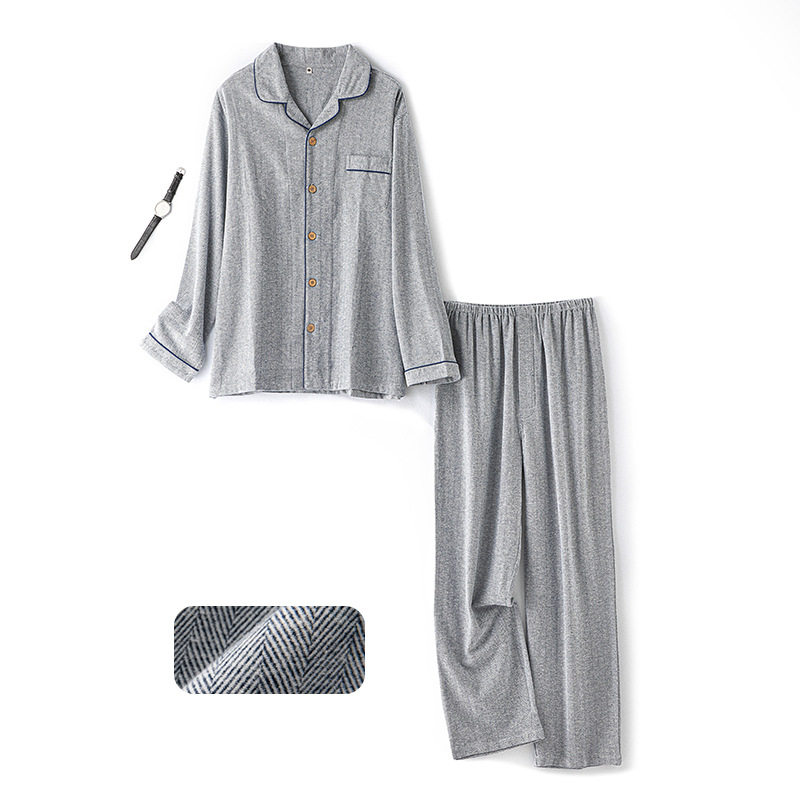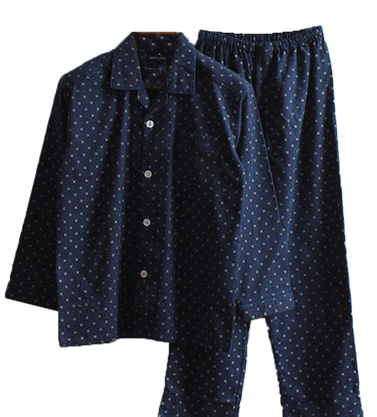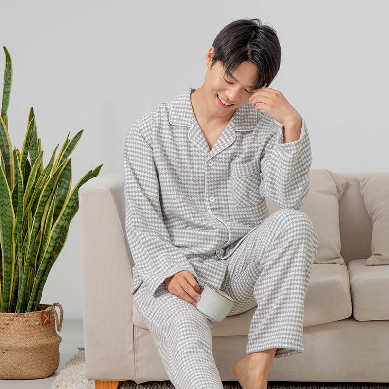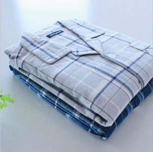 纯棉绒布睡衣男长袖 日系清新格子翻领春秋磨毛绒布全棉家居服套装