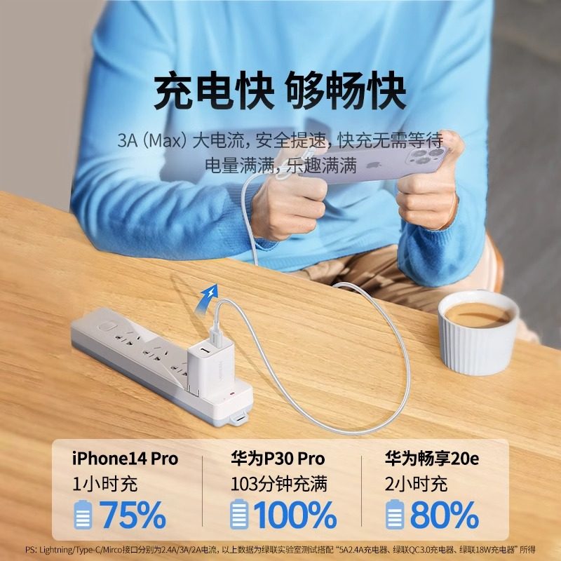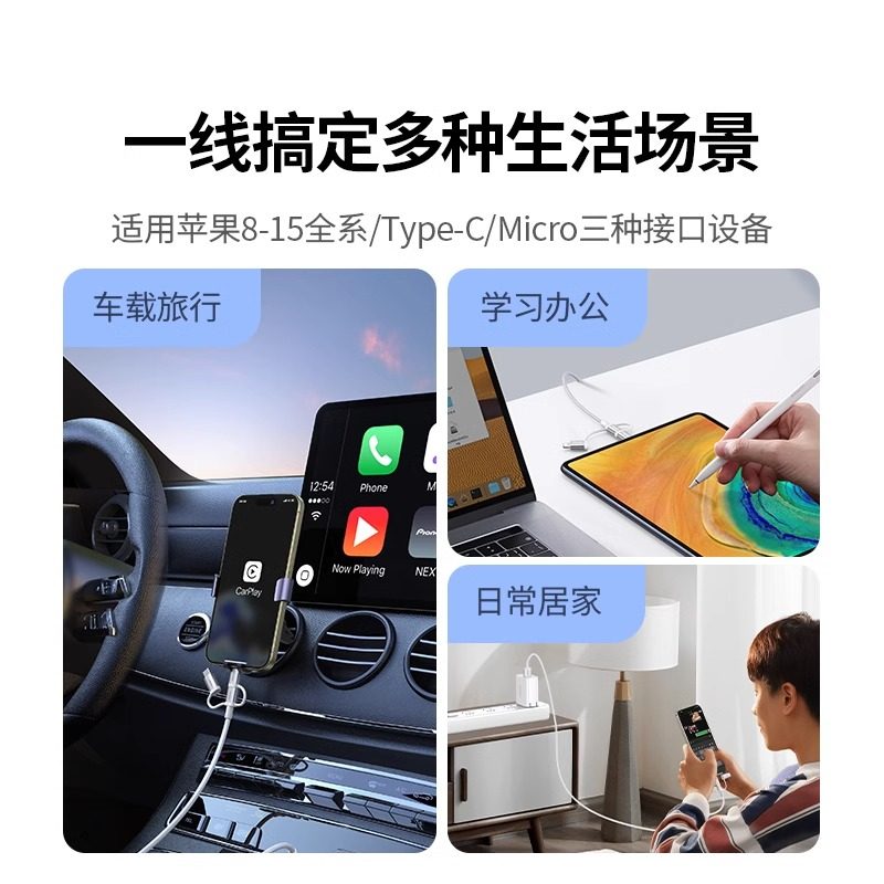 绿联三合一数据线一拖三多头3个快充多功能平板安卓type c车载充电器线加长mfi认证适用苹果7iPhonex8p6s手机