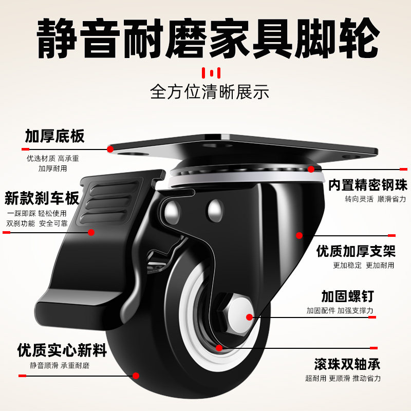 万向轮轮子脚轮1.5寸2寸3寸静音万象转向轮定向滚轮滑轮小号推车