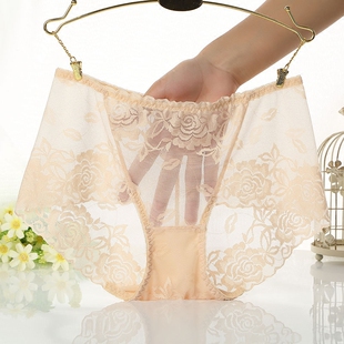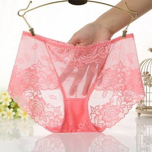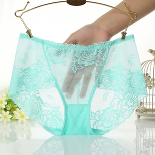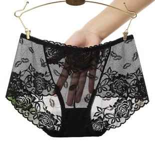 女蕾丝透明中腰夏季 时尚 薄款 新款 无痕网纱女士舒适三角裤 性感内裤