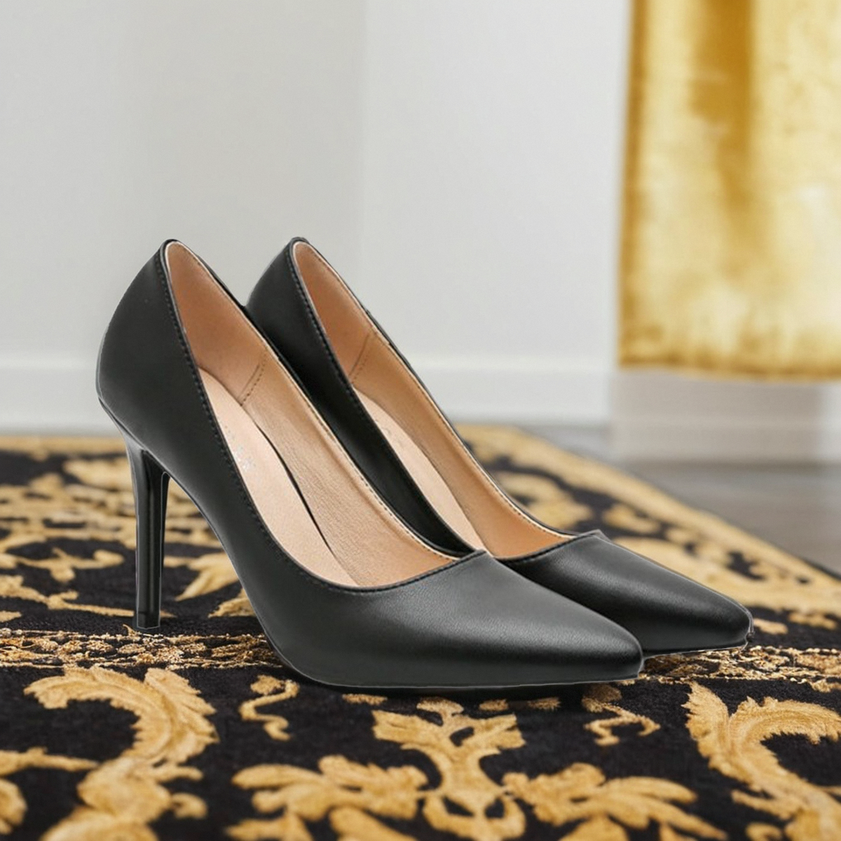 女黑色细跟中跟低跟职业羊皮高跟舒适皮鞋 正装 大码 工鞋 夏季