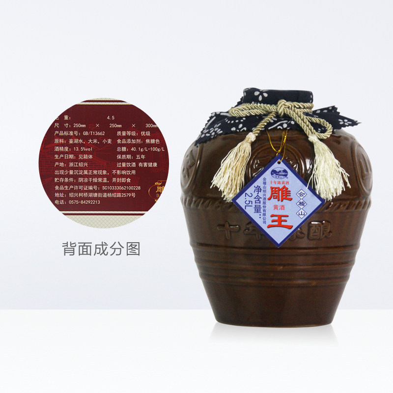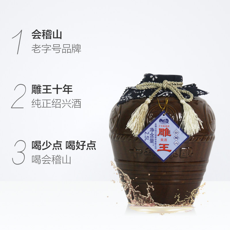 会稽山绍兴黄酒绍兴酒加饭酒雕王十年2500ml 善酿酒 1坛礼盒装