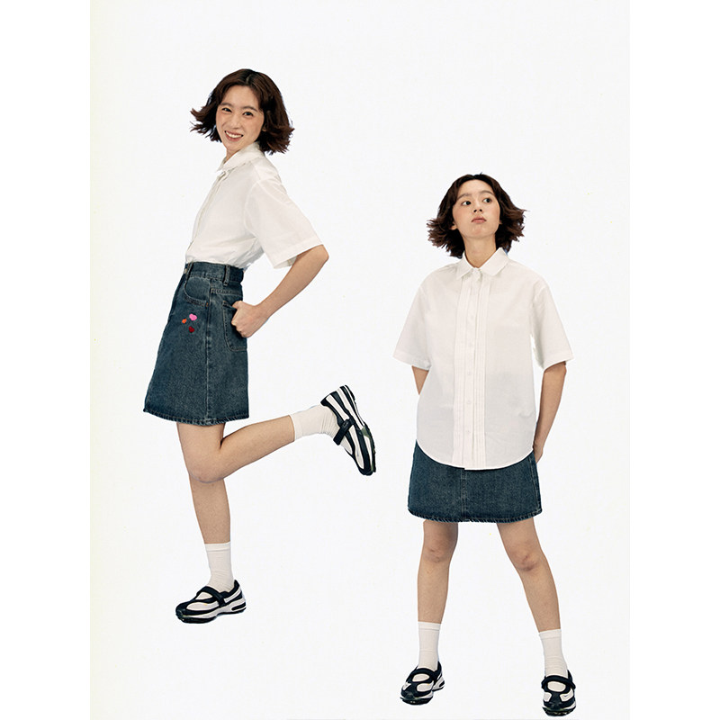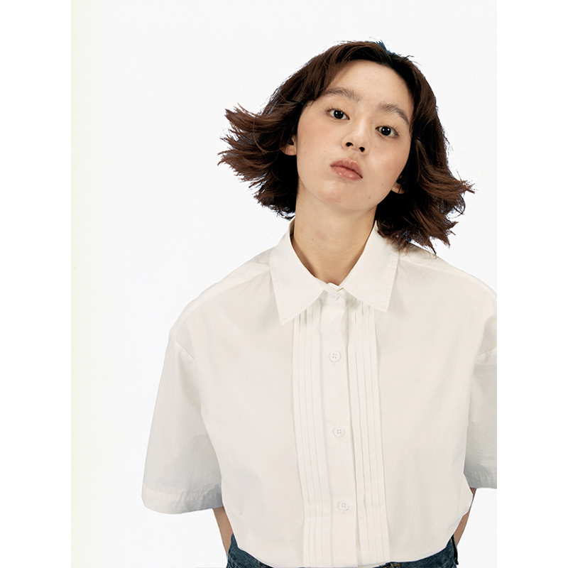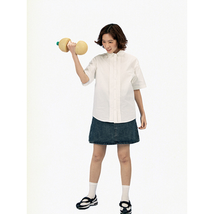 清仓 女夏季 UNRETRO 衬衫 小个子叠穿纯棉衬衣 复古设计感短袖