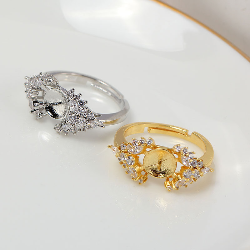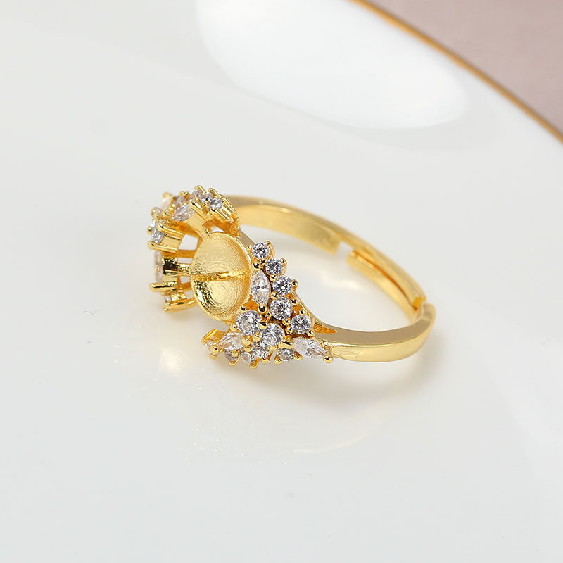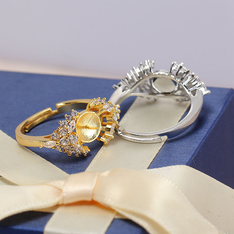 气质时尚 国产14K包金K金工艺 冰雪女王珍珠开口戒指空托DIY配件