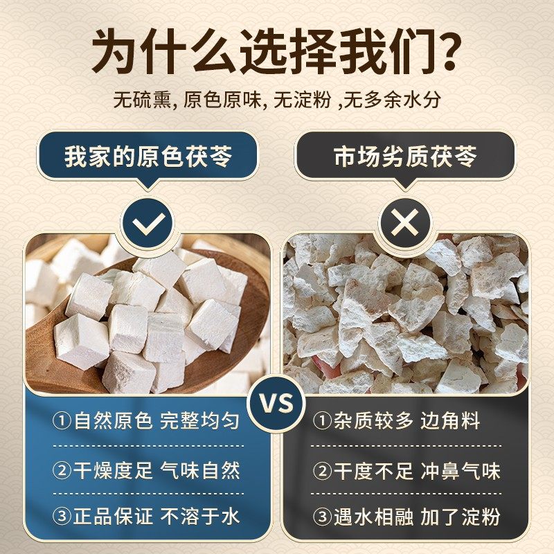 云南茯苓中药材正品 官方旗舰店白茯苓干货500g特级土茯苓粉泡茶水