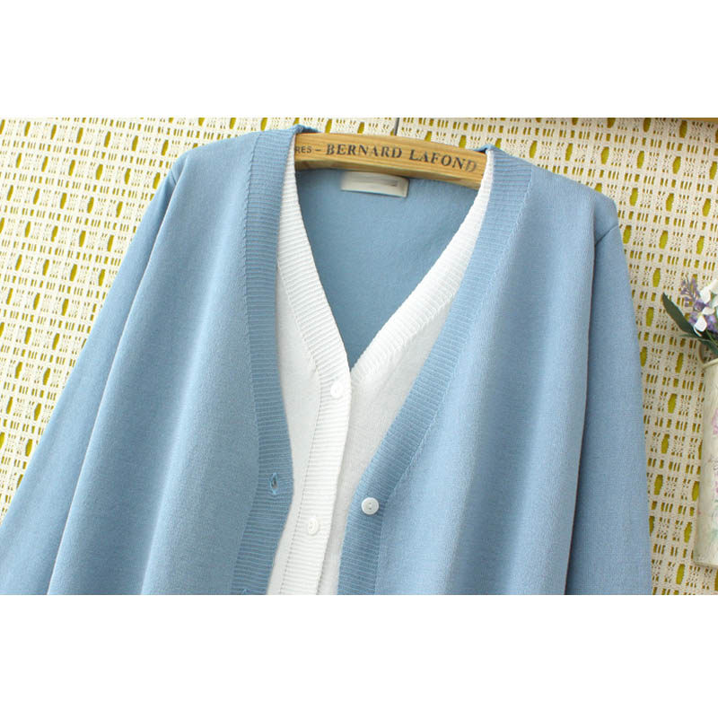 欧货宽松外套春装 大码 上衣胖mm洋气毛衣开衫 假两件v领针织衫 女装