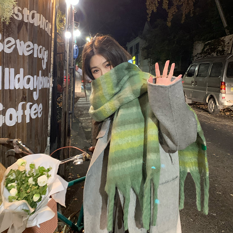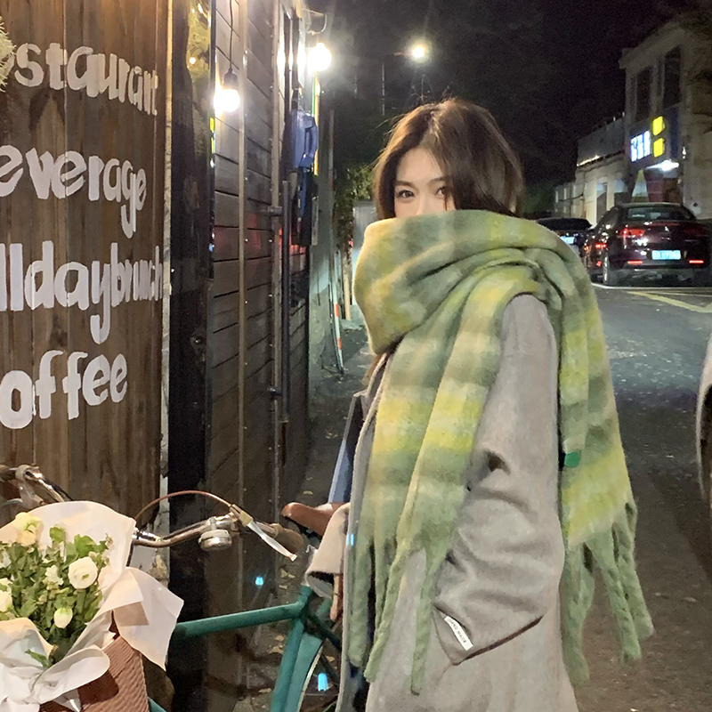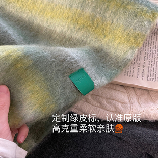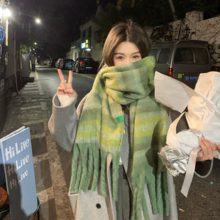 西本加厚保暖围巾冬季 女高级感马海毛绿色仿羊绒围脖加长软糯情侣