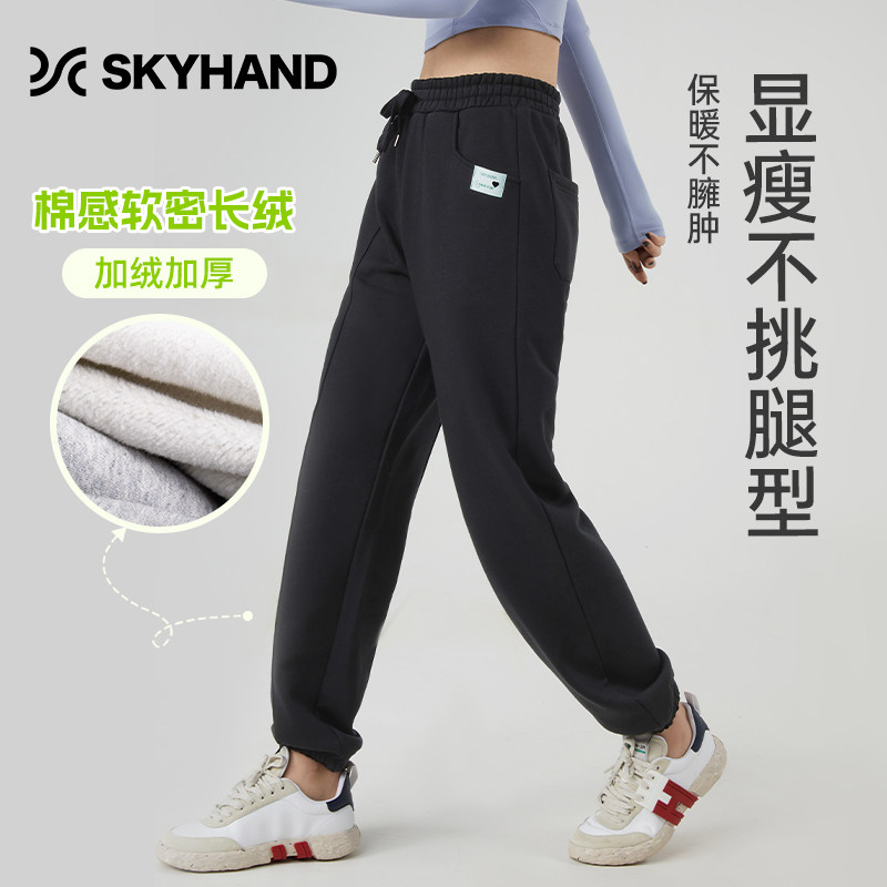 宽松黑色休闲裤 加绒卫裤 子女秋冬运动裤 灰色弯刀裤 长裤 oneup美式