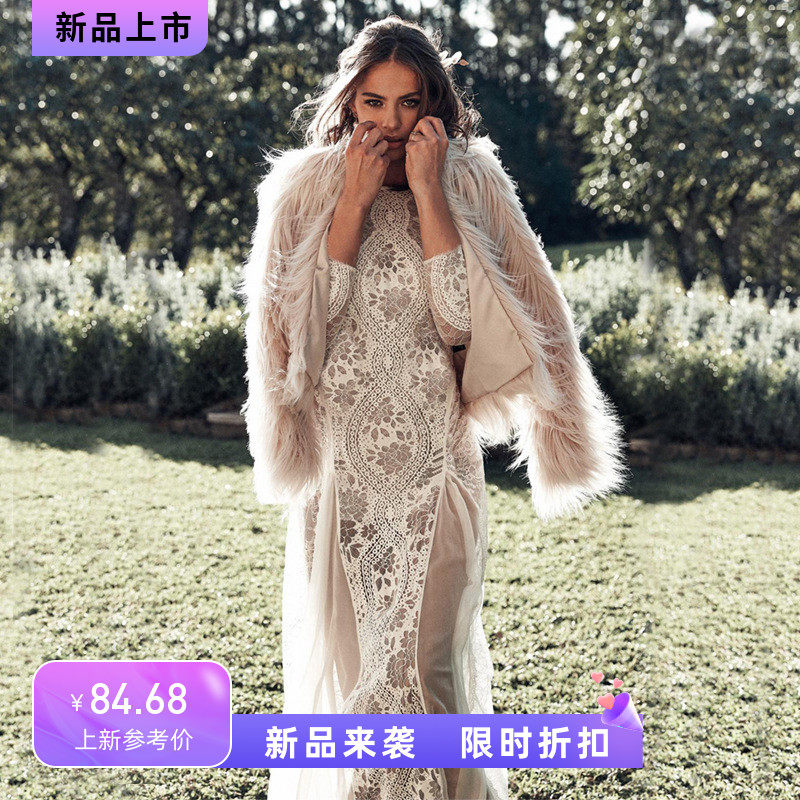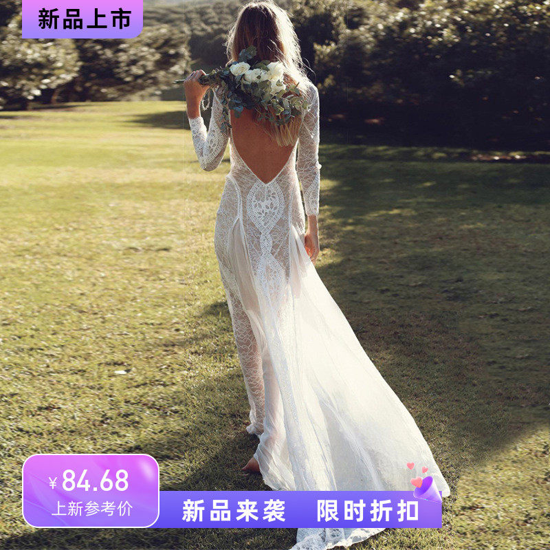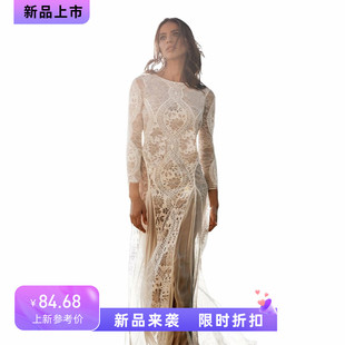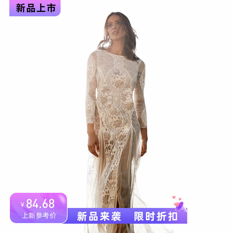 ITSNIKAR法式 复古蕾丝连衣裙女性感收腰鱼骨吊带裙高级白色长裙子