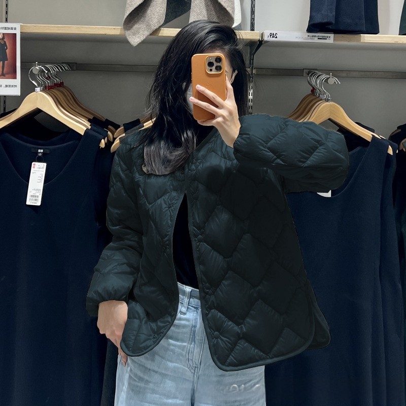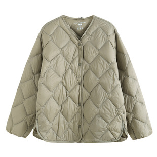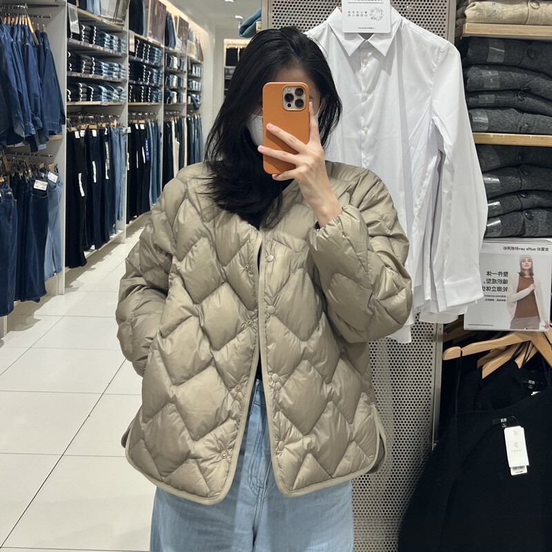 白鸭绒外套25秋冬新款 优U衣菱格v领轻薄羽绒服女通勤百搭时尚 短款
