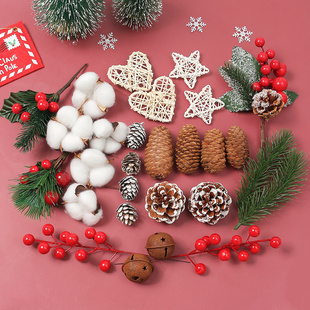 圣诞花环材料包 饰配件 仿真松针棉花发财果红果diy手工圣诞花环装