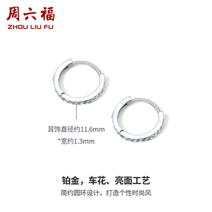 周六福铂金耳钉女pt950耳环耳饰简约耳圈素圈白金小圈送礼物官方