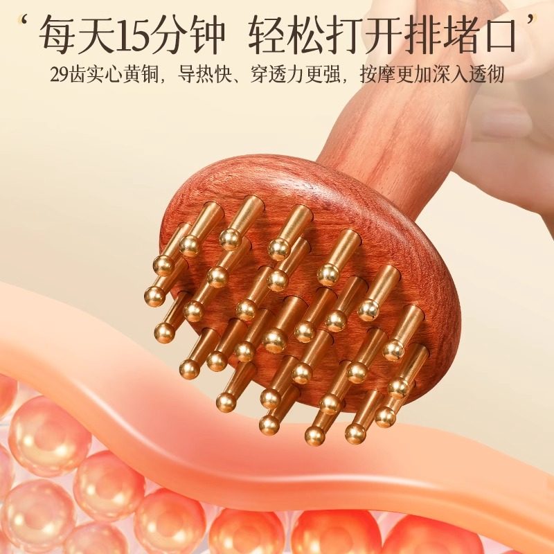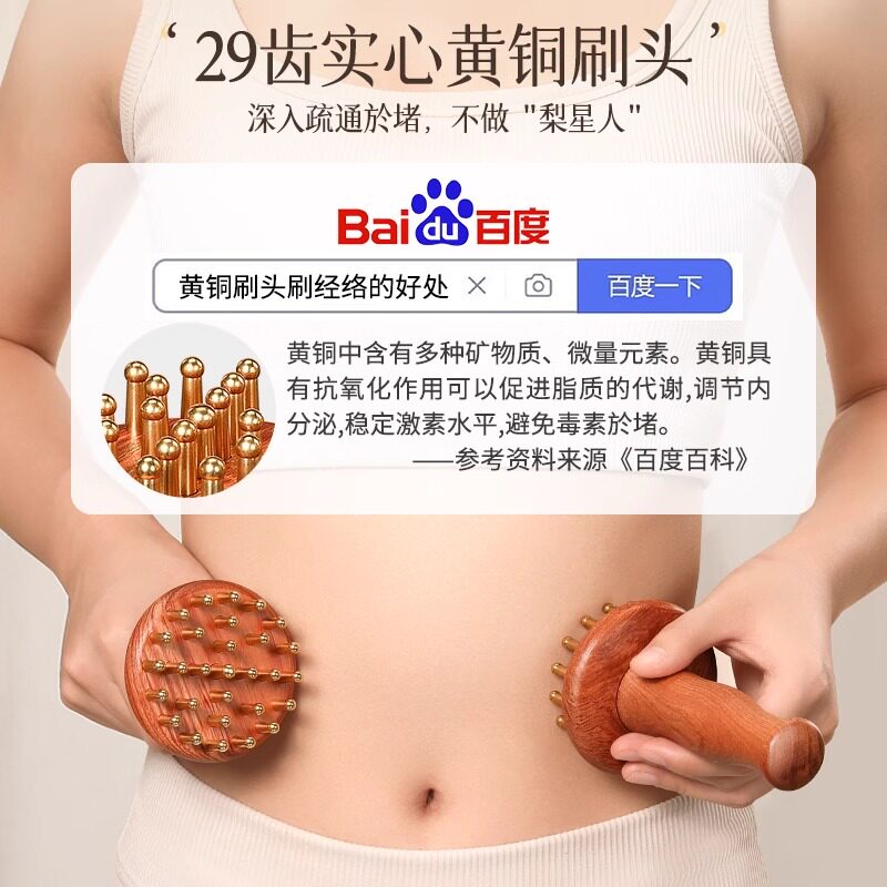 黄铜经络刷29齿纯铜揉腹部肚子腿燃脂按摩梳带脉疏通神器全身通用
