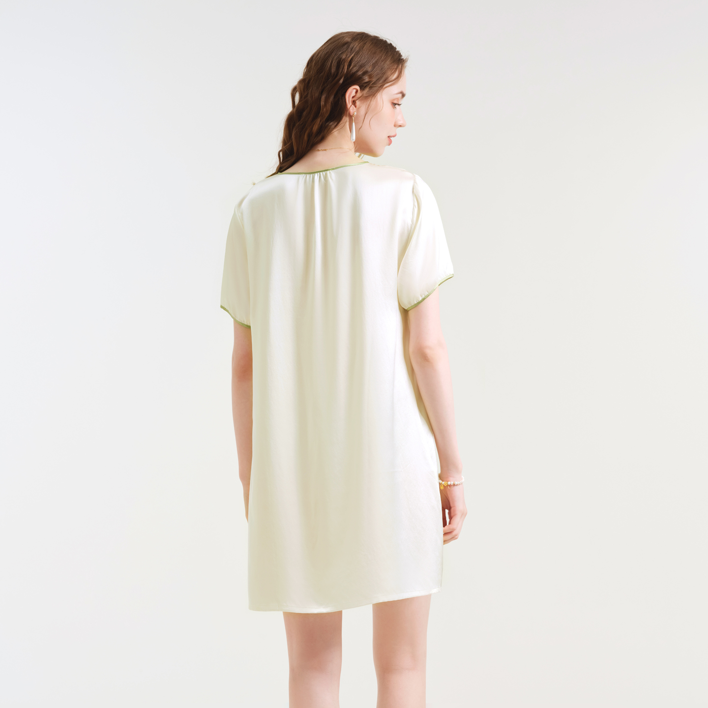 美标新款 真丝睡裙女夏100%桑蚕丝国风睡衣冰氧凉感丝绸家居服 短袖
