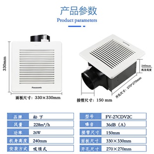 松下排气扇厨房卫生间石膏板天花强力静音管道换气扇FV27CDV2C