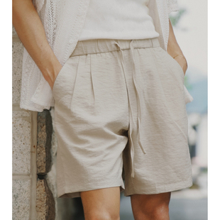 短裤 柒月末 女秋大口袋高级感工装 卡其色麂皮阔腿休闲裤 旷野漫步