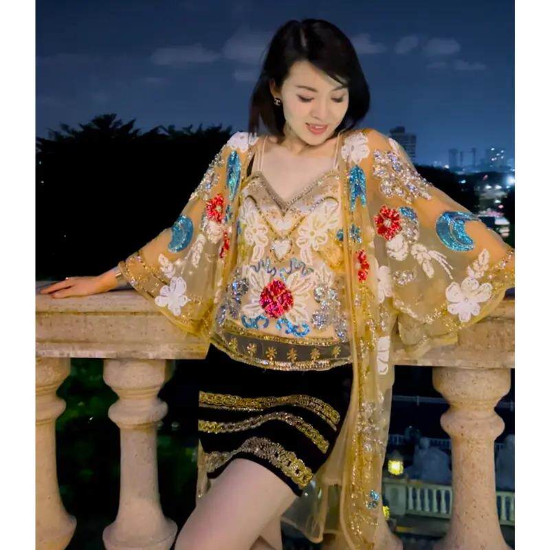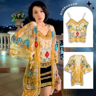 超仙别致开衫 高端休闲宽松钉珠刺绣网纱透视薄款 吊带 213 2030