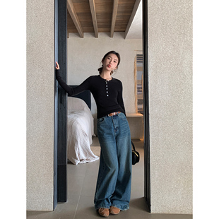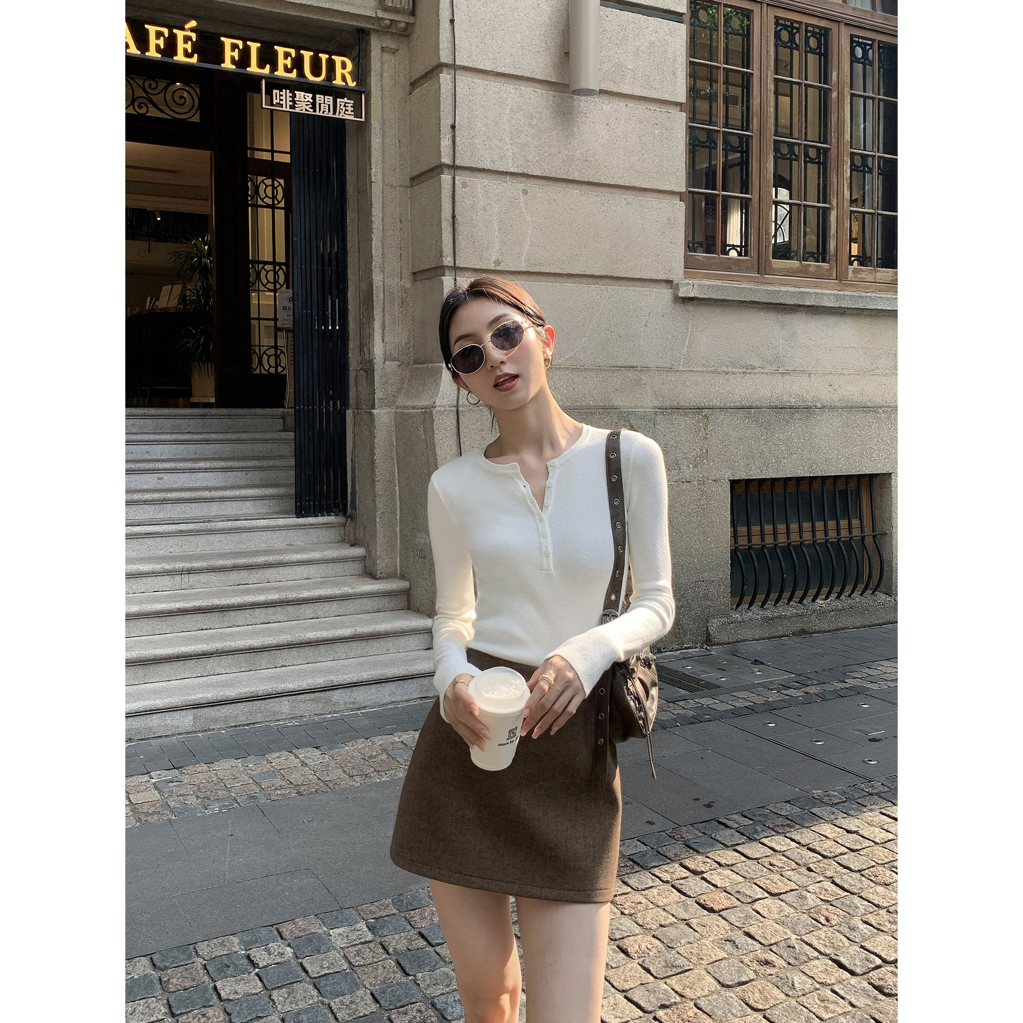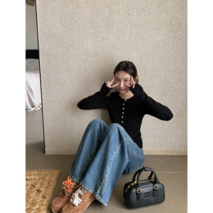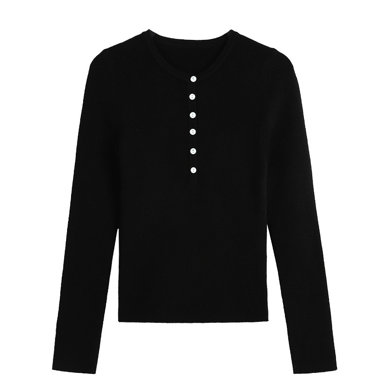 现货7折 显瘦休闲内搭打底衫 黑色V领长袖 女修身 针织衫 MULVAN