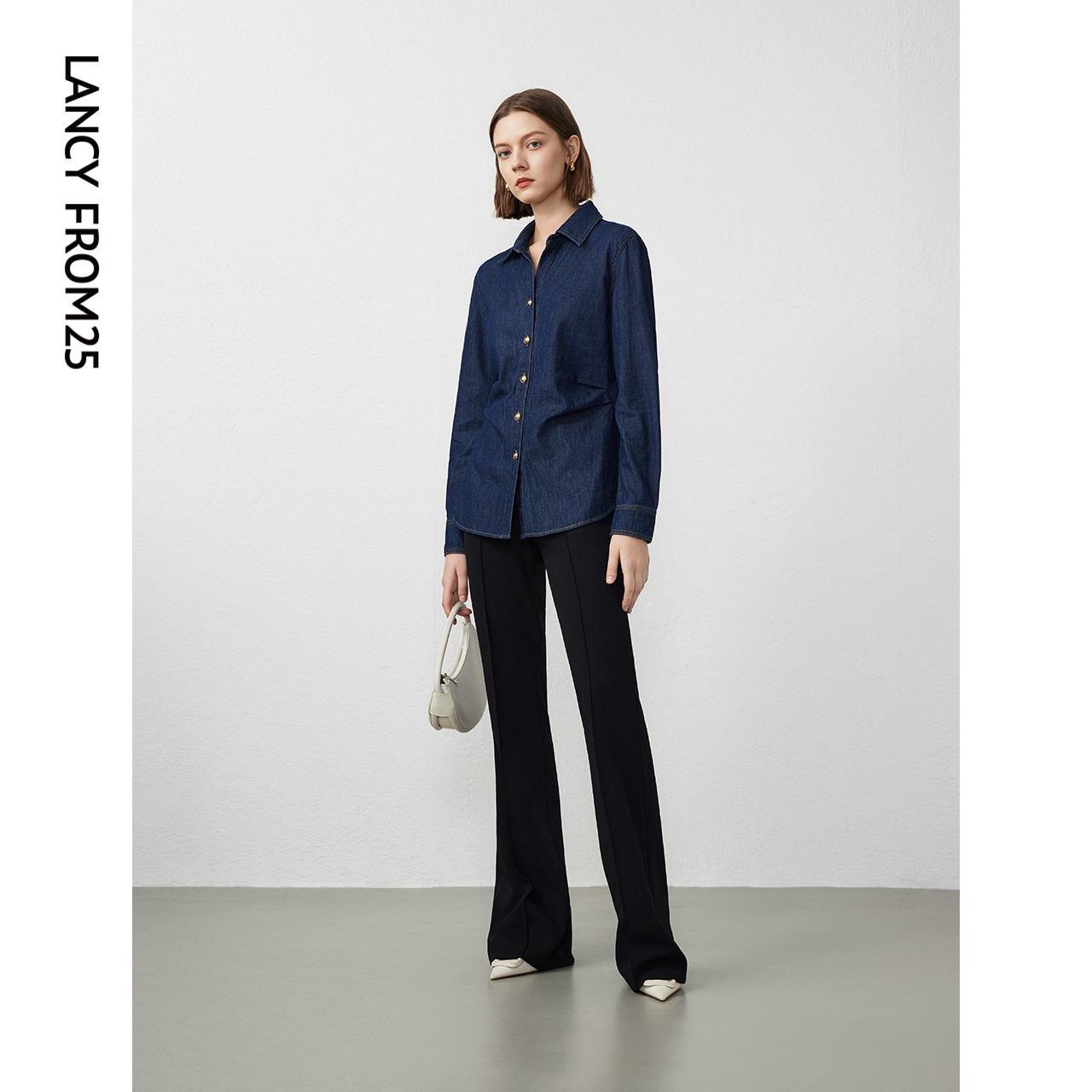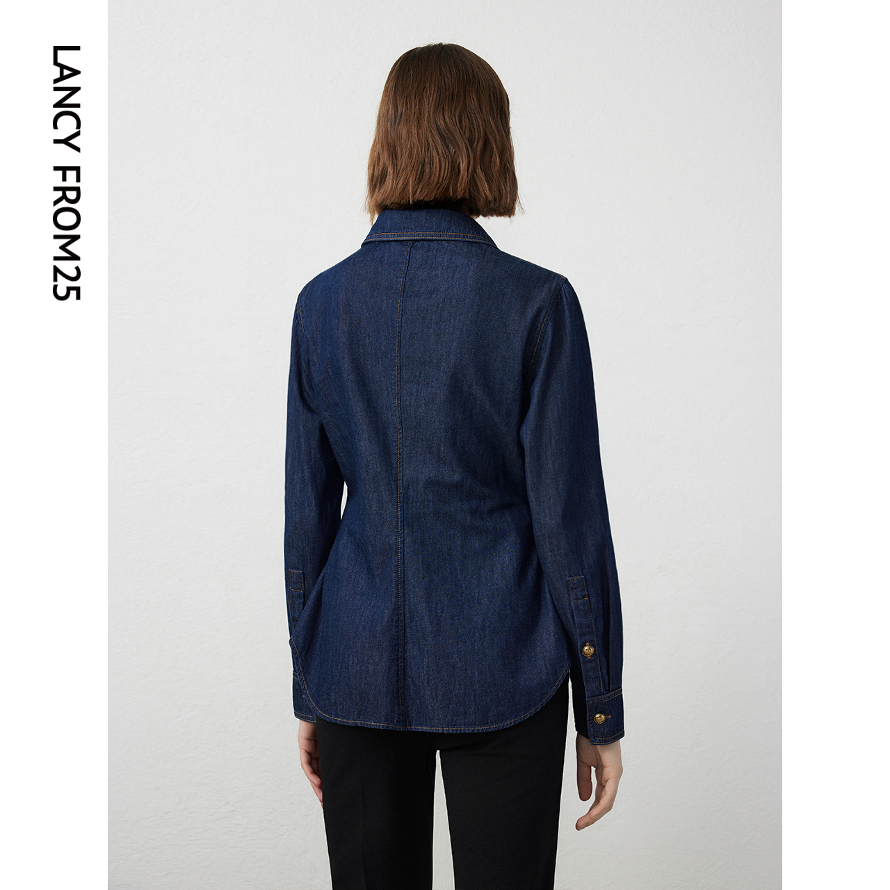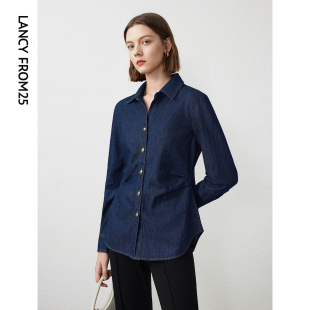 衬衫 长袖 气质上衣 新款 朗姿纯棉复古高级感内搭牛仔衬衣2024年春季