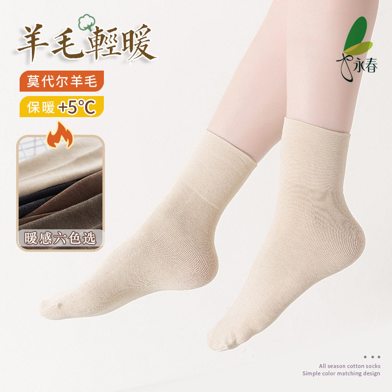 永春2532H羊绒感春秋短袜保暖亲肤纯色羊毛袜柔软中筒袜白色女袜