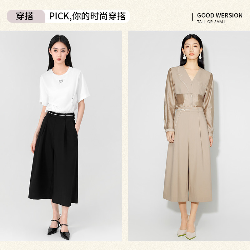 裙小个子百搭宽松七分裤 高腰显瘦休闲裤 子 女夏季 傲丝度阔腿裤